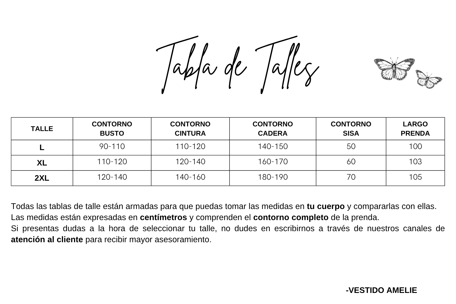 Tabla de medidas: